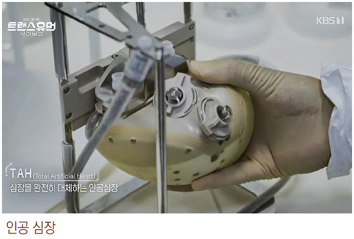 놀라운 건 자가 조절 센서가 있어 사용자의 걸음 속도나 감정 상태에 따라 혈류량을 스스로 조절한다. 생체 심장과 다른 점은 외부 배터리로 작동된다는 점이다. 인간과 기계의 경계선에서 삶이 지속되고 있다.