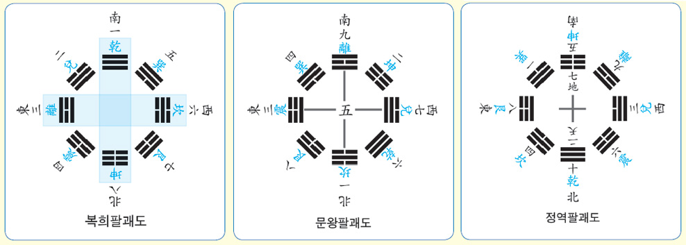 그 가운데 핵심 인물은 ‘태호 복희太皞伏羲(팔괘八卦를 그음)-문왕文王(64괘 괘사卦辭를 지음)-주공周公(384 효사爻辭를 지음)-공자孔子(십익十翼을 지음)-김일부金一夫(정역正易을 지음)’ 이렇게 다섯 성인인데, 모두 동방 동이족의 혈통을 타고 태어난 인물이다. 역 철학은 약 6천 년 동안 동방의 지혜 안에서 성립된 것이다.