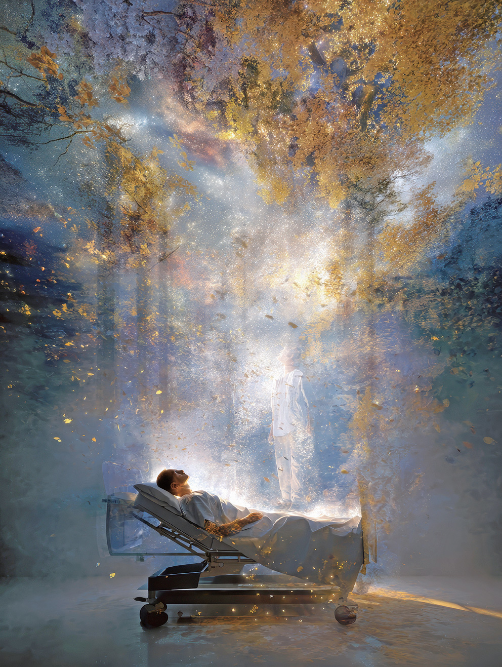 정신과 의사 브루스 그레이슨Bruce Greyson은 수천 건의 사례에서 공통된 특징을 정리했습니다. 심장이 멎어 뇌 활동이 정지된 순간에도 사람들은 몸을 벗어나 자신을 바라보는 느낌, 밝은 빛과의 만남, 깊은 평화감을 보고했습니다.