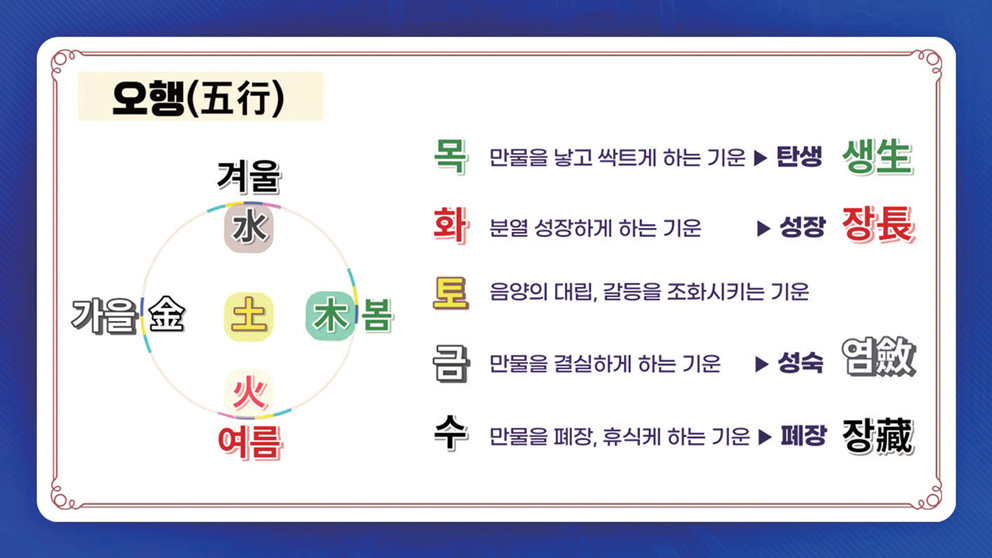 * ‘금金’은 만물을 결실케 하는 기운입니다. 금기의 작용으로 만물이 성숙⦁수렴되는 것을 ‘염斂’이라 합니다.