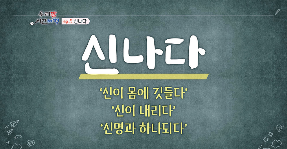 신이 날 때, 즐거울 때, 흥겨울 때, 우리는 자연스럽게 ‘신나다’라는 표현을 씁니다. 그런데 이 말에서 ‘신’은 무엇이고 또 정확히 무엇이 난다는 걸까요?