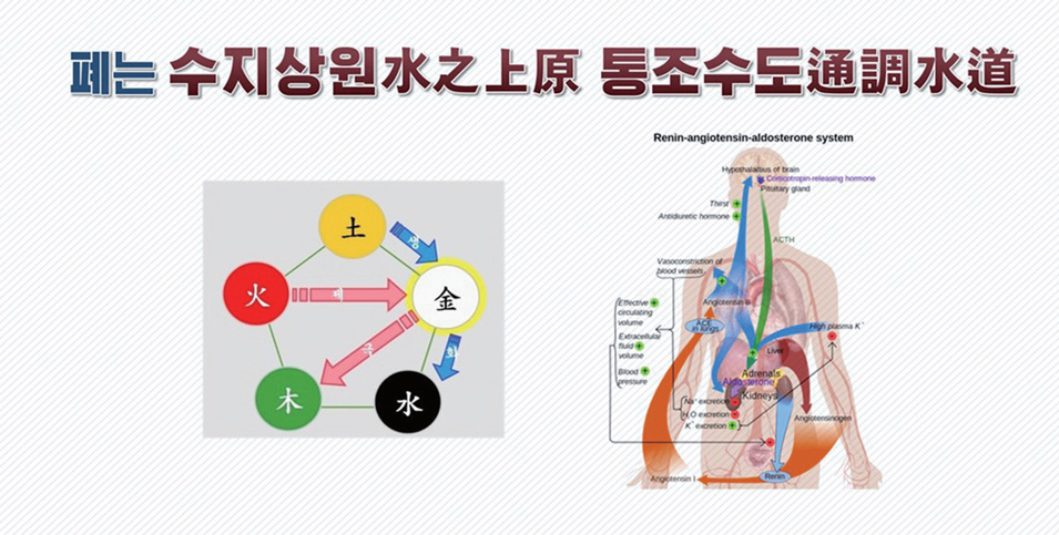 또한 폐는 통조수도通調水道라 하여 우리 몸의 수분대사水分代謝를 조절하는 역할을 하고 있는데요. 우리가 추운 날 소변이 자주 마려운 것은 폐가 찬 기운에 대응하여 땀구멍을 닫아 피부에서 수분이 증발하는 것을 막고 수분을 아래쪽의 방광으로 흐르게 하기 때문입니다.