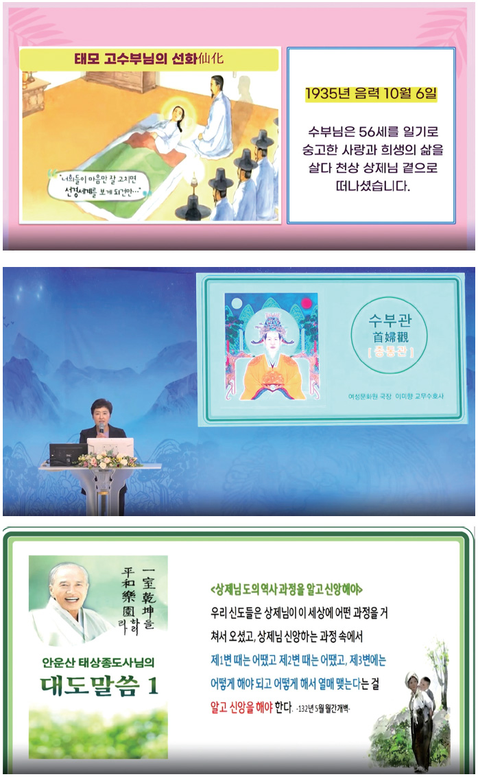 이어진 일정은 태상종도사님의 대도말씀 스폐셜 4회를 시청하며 진리 내용을 정리하는 시간이었다. 태상종도사님께서는 “우리 민족은 족보를 잃어버린 민족”이라며, “민족의 혼을 잃은 것은 단순히 기록이 사라진 것이 아니라, 조상과 나를 잇는 정신의 끈이 끊어진 것이다.”라는 가르침을 내려 주셨다.