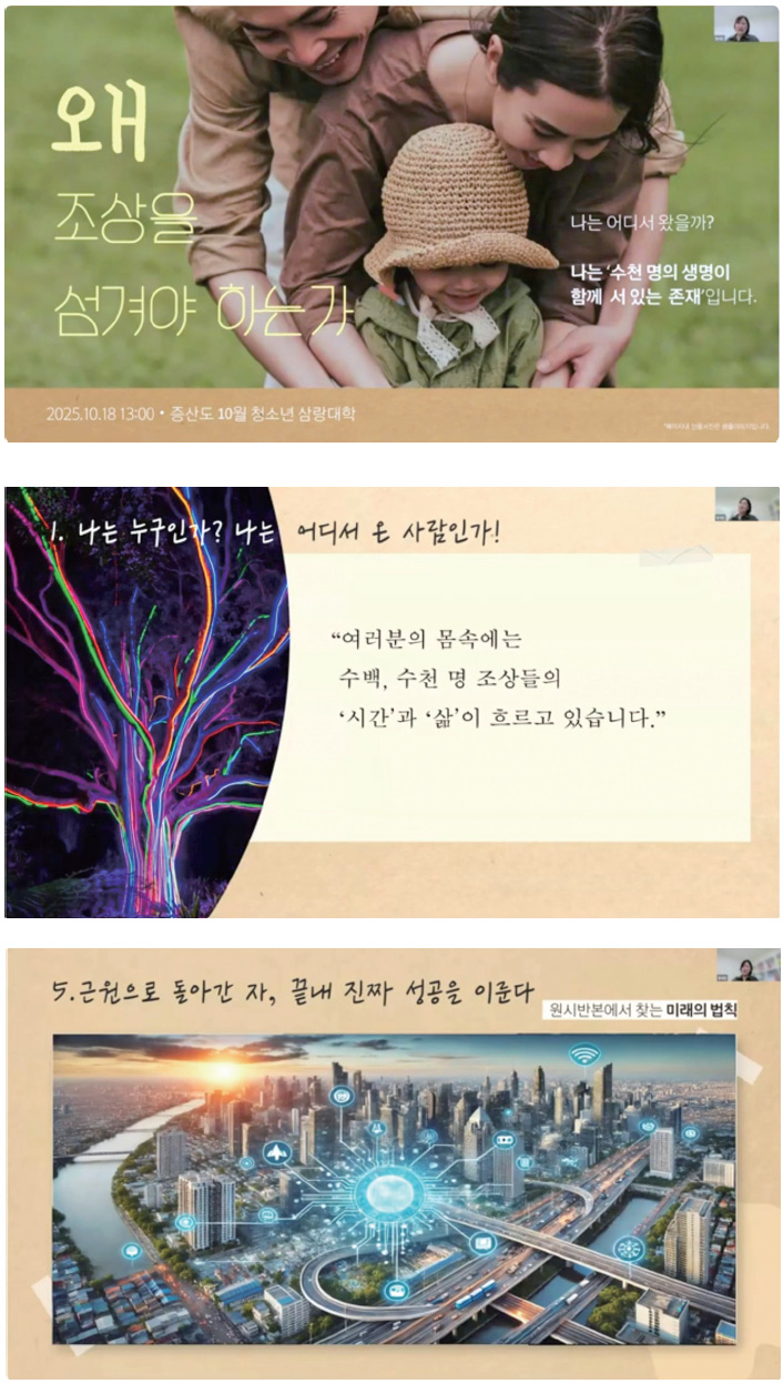 이번 청소년포교회 삼랑대학 교육은 조상과 나, 생명과 우주, 그리고 신앙의 근본을 하나로 잇는 뿌리 교육의 장이었으며, “한 사람의 청소년이 뿌리를 바로 세울 때, 그 가정과 나라, 인류의 미래가 함께 밝아진다.”라는 메시지가 선명히 전해진 시간이었다.