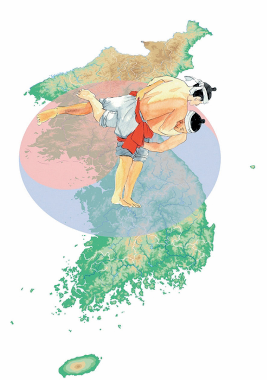 하루는 상제님께서 말씀하시기를 “현하대세가 씨름판과 같으니 애기판과 총각판이 지난 뒤에 상씨름으로 판을 마치리라.” 하시고 종이에 태극 형상의 선을 그리시며 “이것이 삼팔선이니라.” 하시니라.또 말씀하시기를 “씨름판대는 조선의 삼팔선에 두고 세계 상씨름판을 붙이리라. 만국재판소를 조선에 두노니 씨름판에 소가 나가면 판을 걷게 되리라.