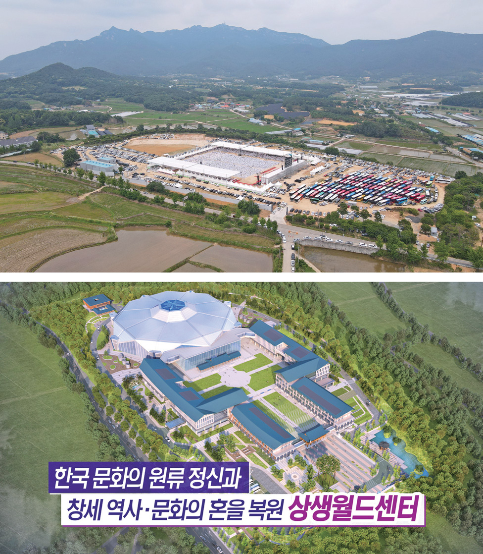 그렇게 해서 후천 5만 년 대신선, 무병장수 문명의 사령탑, 상제님의 우주 통치 사령탑인 태라천궁, 즉 상생월드센터가 여기에 들어오고 1만 2천 도통군자가 자리를 잡게 되는 것입니다.