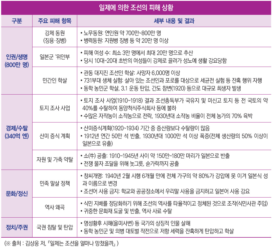 국권을 잃은 우리 민족은 일본 제국 아래에서 35년간 노예 생활을 했는데 그동안 죽임을 당하거나 다친 사람이 무려 800만 명에 이르렀습니다. 일제는 우리 문화재를 반출하고 역사와 문화 관련 서적 수십만 권을 마치 군사 작전하듯이 2차에 걸쳐 거두어들여 저 남산南山에서 불태워 버렸습니다.