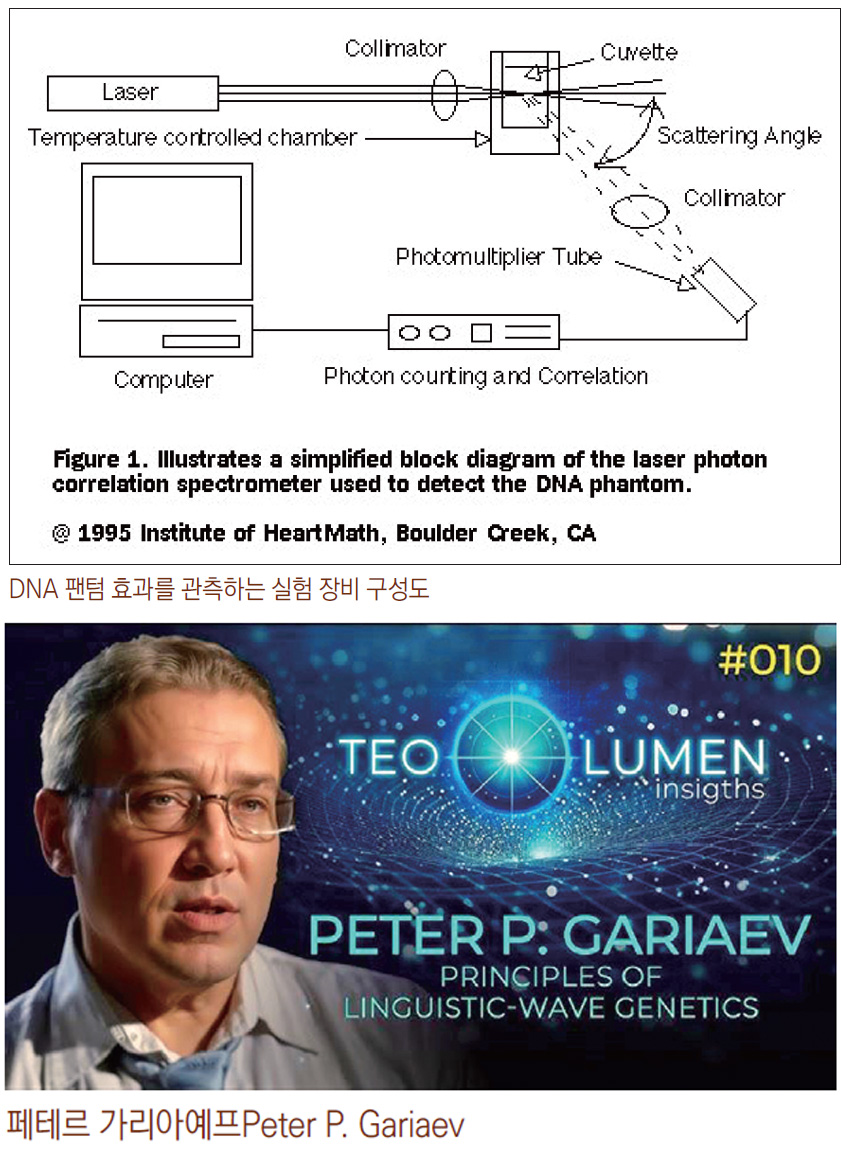 이 책에 나온 내용은 아니지만 〈DNA Decipher Journal〉에 실린 피터 가리아예프 박사의 논문 내용(Principles of Linguistic-Wave Genetics, 2011)에 의하면, ‘파동 유전학(Wave Genetics)’은 “DNA가 단순히 화학 물질 덩어리가 아니라, 빛(광자)과 소리(전파)를 흡수하고 저장하며 통신하는 생체 컴퓨터”라는 혁신적인 이론이다. 핵심 내용을 정리해 보면 이렇다.