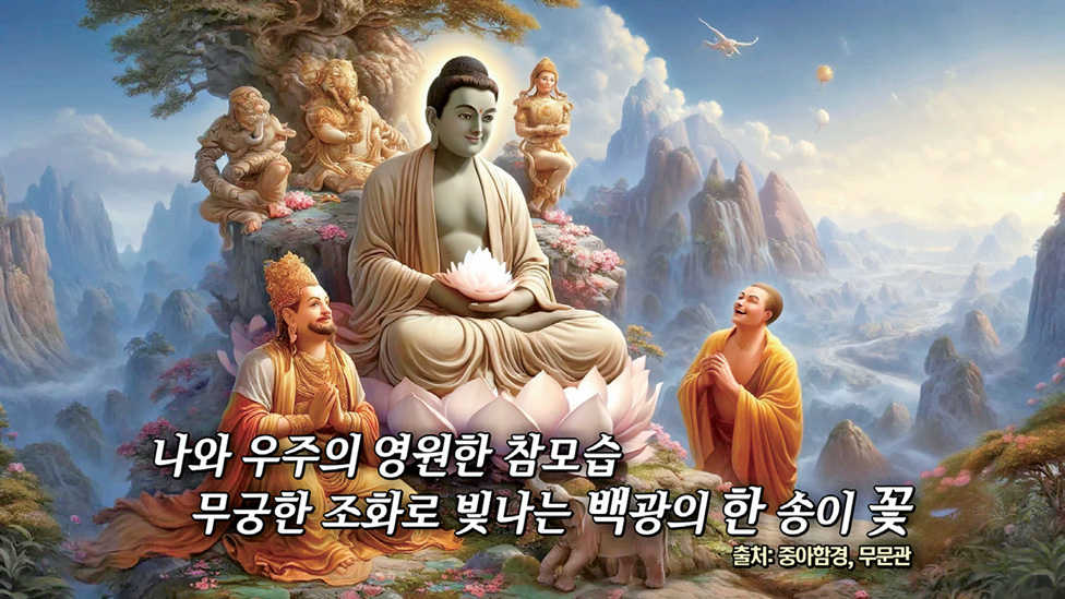 “스승님, 저도 그 꽃이 보였습니다. 우주 깊은 곳으로 들어가니까 온 우주가 한 송이 거대한 백광의 꽃으로 보였습니다.” - 가섭