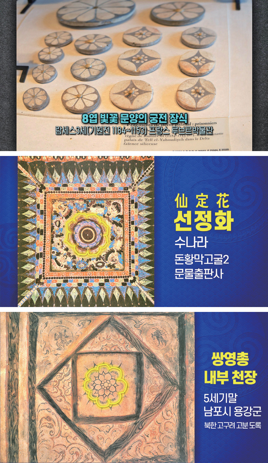 이 팔은 양팔陽八과 음팔陰八로 이루어지는데 그것을 팔음팔양八陰八陽이라 합니다. 전 지구에 있는 거대한 신전, 성당 그리고 이슬람 문화권의 성당을 찾아가 보면 그 안에 잎이 열여섯으로 된 꽃이 그려지거나 조각되어 있습니다. 이슬람 문명권의 예술 감각은 오늘날의 시각으로 봐도 쉽게 이해가 안 갑니다. 불교도 그것을 못 따라가고 기독교, 천주교도 못 따라갑니다.